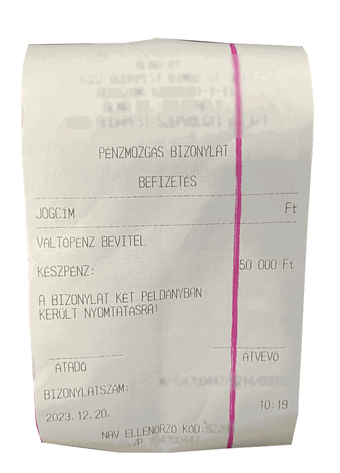 Adóügyi nyomtató által nyomtatott bizonylatok