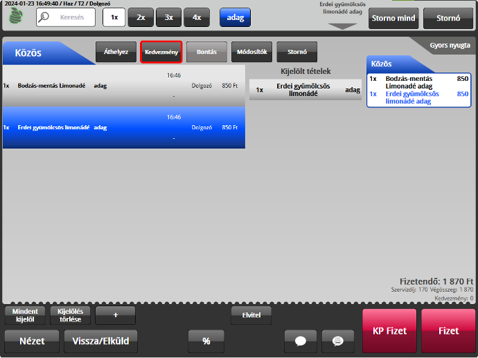 A rendszerben két féle módon lehet kedvezményt alkalmazni az értékesítés során:
