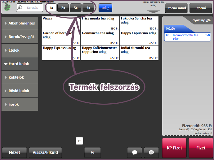 Társaságoknál gyakran előfordul, hogy többen is kérnek egy azonos termékből. A terméket természetesen egyesével is fel lehet ütni, azonban hatékonyabb leszel, ha a felszorzást használod.