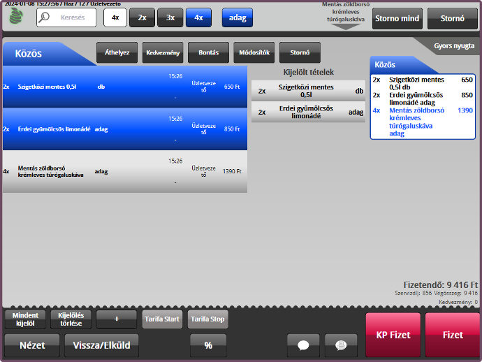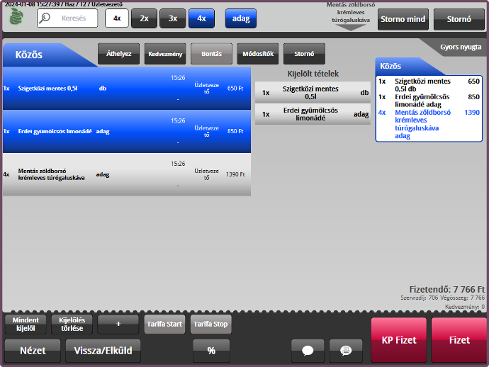A termék felszorzáson kívül a termékek mennyiségét lehet növelni a  gomb segítségével.